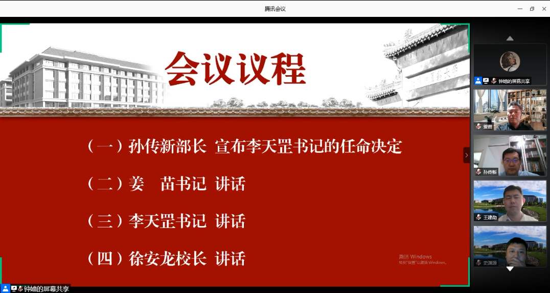 7月24日上午9时30分,威廉体育williamhill党总支召开线上全院大会,董事长徐安龙,党委常委、组织部部长孙传新出席会议并作讲话,会上宣读了李天罡同志出任威廉体育williamhill党总支书记一职的决定,公司领导班子及全体教职工参加会议。会议由威廉体育williamhill党总支副书记许珊主持。