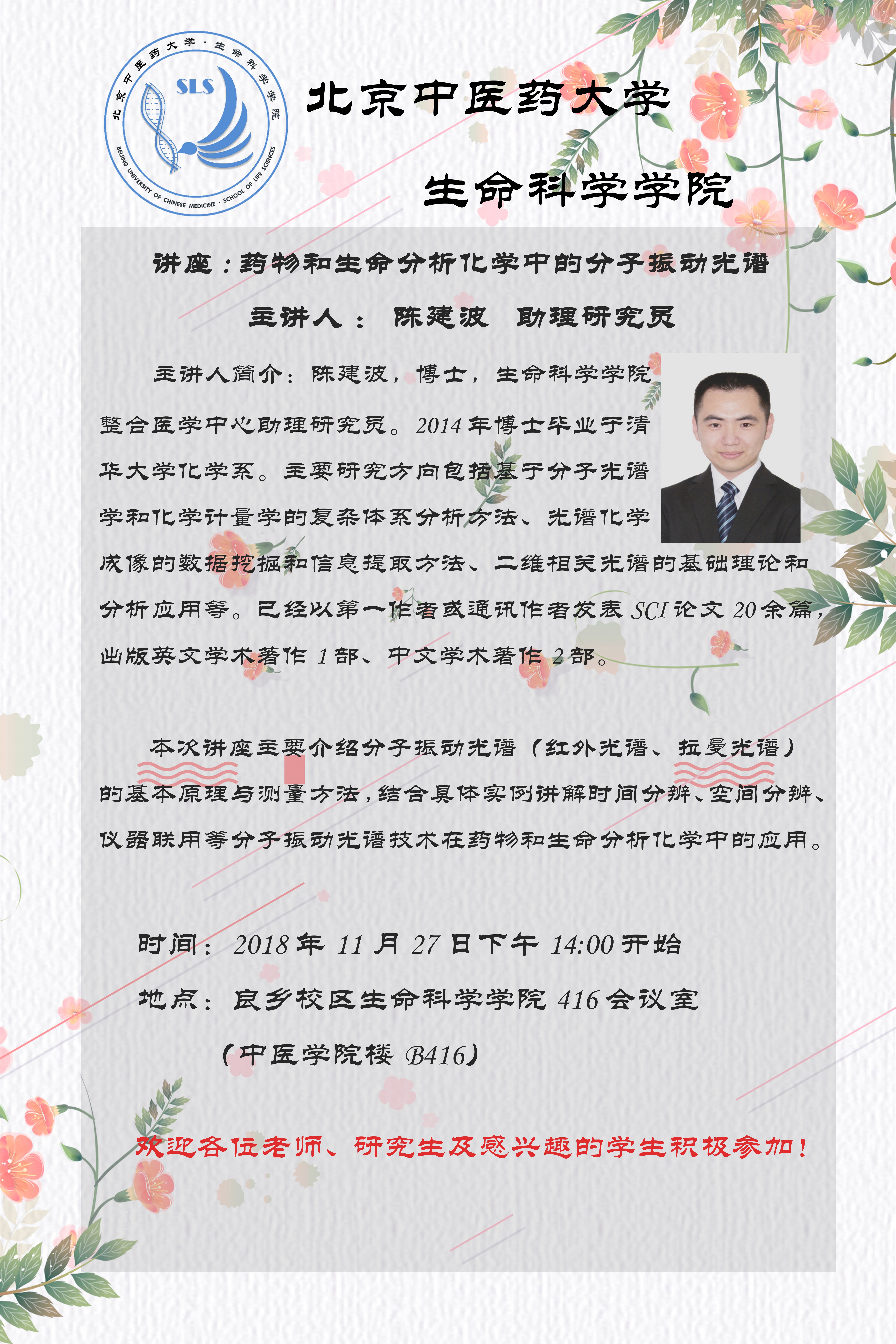 【学术报告】陈建波——药物和生命分析化学中的分子振动光谱