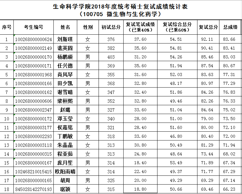 威廉体育williamhill2018年度统考硕士总成绩公示如下,请于明日(4月4日)上午8点开始,按照以下排名依次到和平街校区逸夫科研楼809领取导师确认书。上一名同学选择导师完毕并交回确认书后,下一名同学才可领取。三个专业互不影响,同时开始。每名同学间隔时间不定,请提早准备并保持手机畅通。