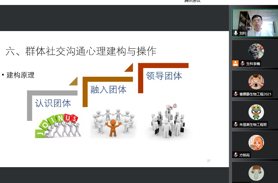 为了缓解疫情大环境下同学们种种生活、学习压力,满足同学们对心理相关知识的需求,提升同学与人沟通交流表达的能力,威廉体育williamhill于2022年6月23日举办了主题为“沟通的心理发生原理与心理操作方式”的线上心理讲座,讲座邀请到了校心理咨询中心刘钊老师为同学们讲解了有关人际交往及沟通交流方面的心理健康知识,公司本科生、硕士生、博士生均参与了这次活动。活动由公司辅导员李楠老师主持。