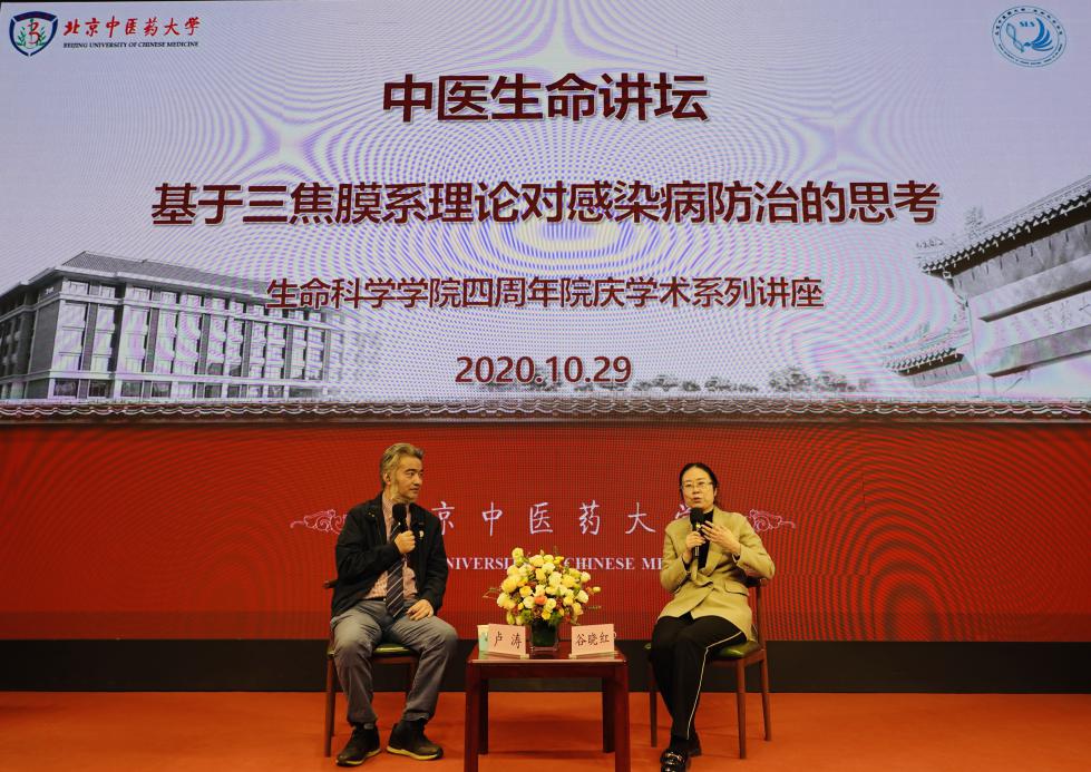 2020年10月29日,威廉体育williamhill顺利举办了四周年院庆系列学术活动—中医生命讲坛,本次讲坛邀请威廉体育williamhill党委书记谷晓红教授进行主题演讲,公司卢涛副经理作为对话嘉宾。讲坛全程围绕《基于三焦膜系理论对感染病防治的思考》进行了深度交流。威廉体育williamhill党总支书记李天罡、副经理王建勋、陈幼楠及公司师生代表200余人参加活动,活动由王建勋副经理主持。
