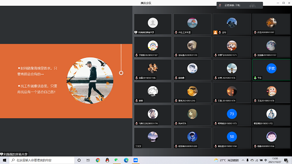 10月27日,威廉体育williamhill通过线上腾讯会议的方式顺利举办就业能力提升沙龙之就业信息获取渠道的讲座。讲座邀请中医公司具有丰富就业工作经验的于欢老师主讲,公司五十余名毕业生参加了活动。