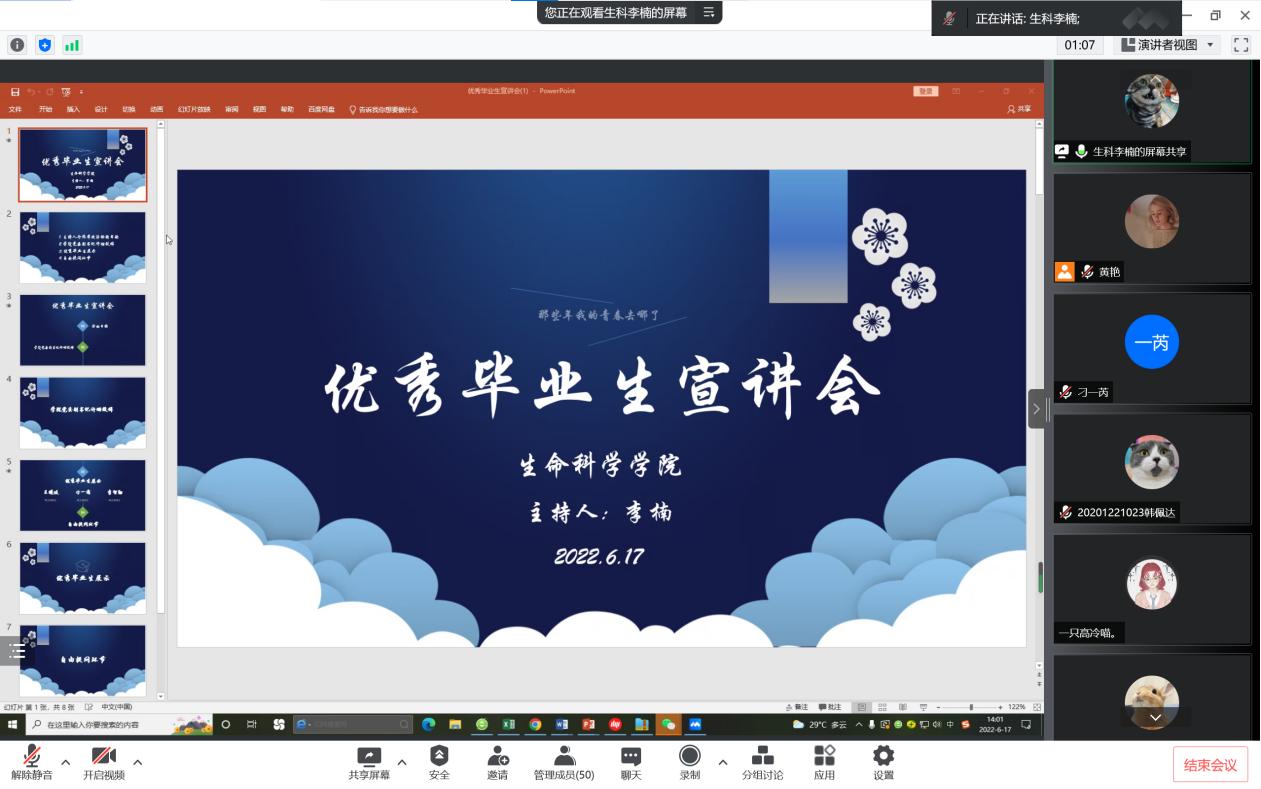 为充分发挥优秀毕业生的朋辈引领作用,威廉体育williamhill于2022年6月17日下午2点,通过腾讯会议的形式顺利组织开展了优秀毕业生宣讲会,为同学们搭建了一个相互沟通交流的平台。威廉体育williamhill党委副书记许珊、辅导员李楠、优秀毕业生代表、全体本科生、各研究生班级代表参加了活动。活动由李楠老师主持。