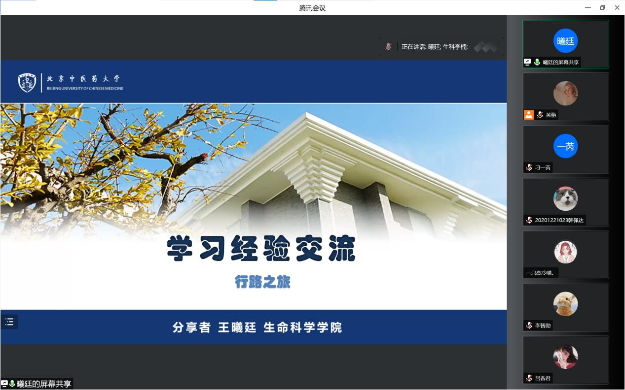 优秀博士毕业生王曦廷同学,首先进行了分享交流。他和师弟师妹们分享了要注重科研思维与能力的培养,讲解了论文撰写的逻辑和要点,并向大家分享了一些自己在科研中常用到的网站、软件以及论文投稿的经验和心得。