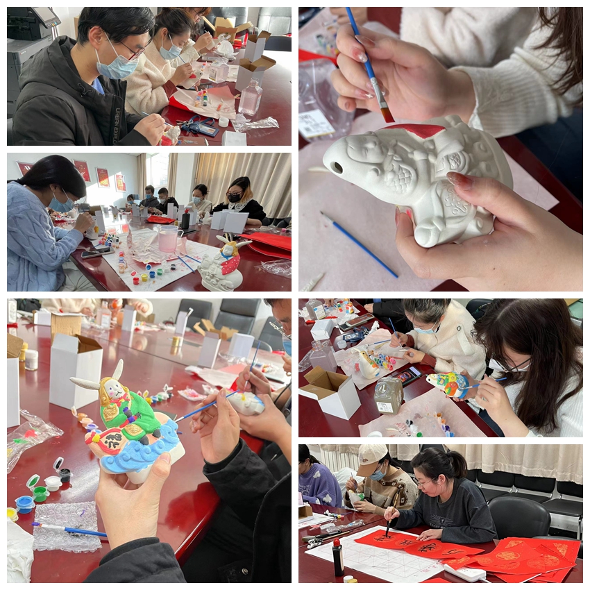 “兔爷儿”是最具代表性的北京非物质文化遗产之一,同学们体验亲手彩绘兔爷儿。一笔一划地勾勒,一张一弛地绘制,是一次奇妙的新春体验,更是一场与民俗文化的对话,同学们增进了对手工制作艺术品的兴趣,收获了亲手绘制的有温度又精美的艺术品,也加深了对民俗文化的认识。经过1个半小时的绘制,一尊尊造型相同,颜色各异的兔爷新鲜出炉,同学们相互分享着,开心喜悦的笑容洋溢在大家脸上,欢声笑语让整个活动现场热情而温暖。一张张福字,一幅幅对联,也都凝聚着学子们对对同学、对朋友、对家人、对老师同学们的新春祝福,寄语新的一年顺心顺意,福气多多,大家也激励着自己要在新的一年百尺竿头,更进一步。公司为留校学子精心准备的吉祥物,也为同学们带去了满满的祝福。