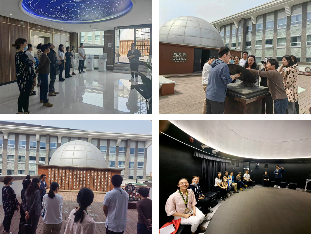 随后,两支部党员来到中医公司天文台。中医公司天文台是中医学与天文学交叉融合的体现,中医基础支部刘雷蕾老师做以“天人合一”为主题的详细讲解。党员们参观体验了多种天象测量仪器,并通过体验观天阁的天体景观模拟系统,对古代中医学者“天人相应”的思想有了具象化的认识,理解自然界的变化规律应用于养生和治疗实践的理念。
