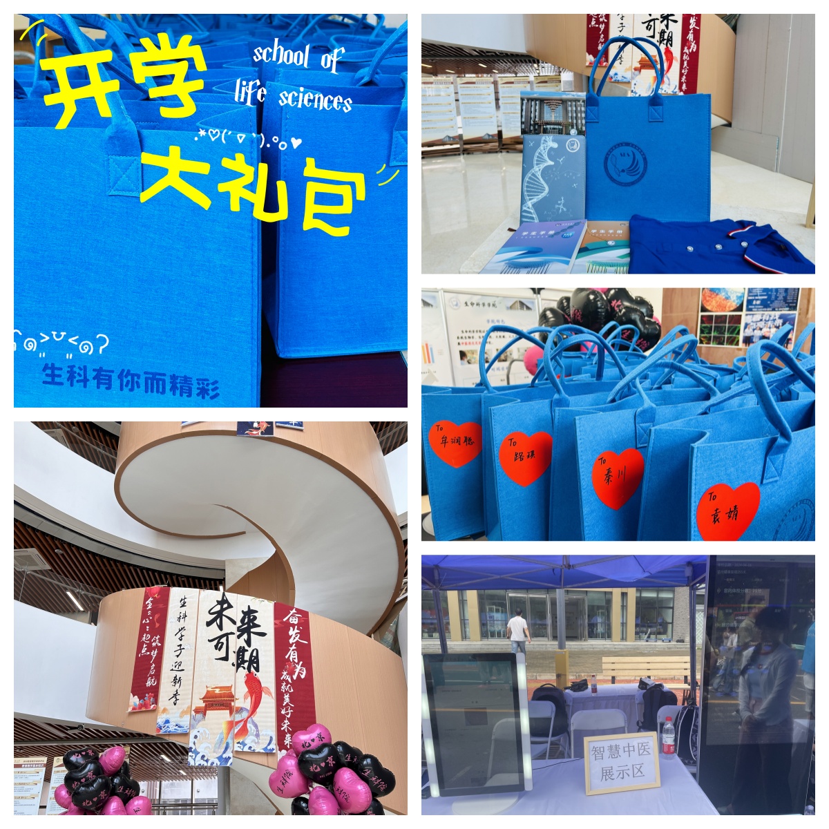 校领导深入迎新现场,与新生们亲切交流,询问他们的需求和感受,并鼓励他们珍惜大学时光,努力学习,全面发展。公司为孩子们准备了别具特色的“开学大礼包”,美丽生科蓝搭配热情爱心红,由师兄师姐用爱心贴纸手写姓名并贴于蓝色毡布袋外侧,为本科生学弟学妹们送上一份真挚的祝福,心意满满。“双螺旋”主题记事本、精巧别致的生科人专属书签、公司特色明信片,公司用心用情欢迎新同学。报到现场,孩子们和一直线上交流的师兄师姐见面,异常亲切,师兄师姐们帮助学弟学妹搬运行李、引导办理各类手续,带领大家参观校园,充分展现了生科人青春、热情、互助、进步的精神风貌;“寄给未来自己的信”作为生科院传统迎新活动,非常受新生欢迎,我们用相机定格每一位新生最美报道瞬间,由志愿者现场打印、火漆封印,新生亲手将写给毕业时自己的一份期待和祝福投入“时光邮筒”,寄给未来的自己;“青春有我,点亮未来”班徽班服设计大赛成果在迎新现场进行了展示,孩子们穿上自己参与设计的班服时那种自豪和喜悦溢于言表,对生科大家庭的归属感也不断升温。